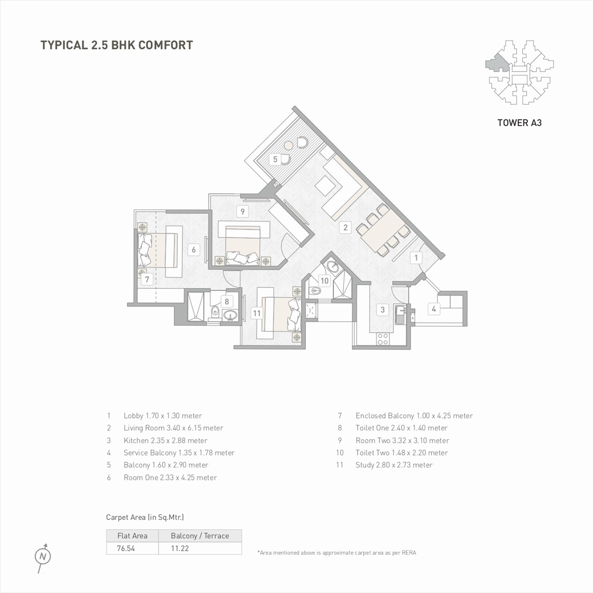 | 3 BHK | 1150 Sq.Ft | ₹ 1.54 Cr* Onwards |